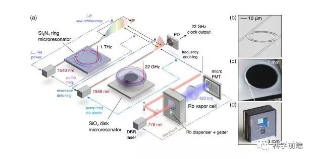 图1 由NIST、加州理工学院、斯坦福大学和Charles Stark Draper实验室开发的微制造光子光学原子钟的示意图
